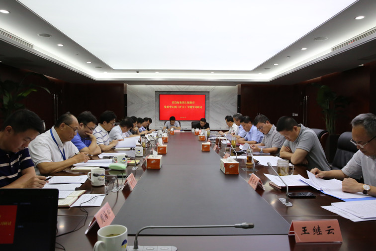 根據主題教育活動安排,7月19日,省沿海集團黨委舉行中心組(擴大)專題學習會,黨委書記、董事長鄧東升主持學習,黨委副書記姜凱、副總經理田鎖慶分別作重點研討發言。