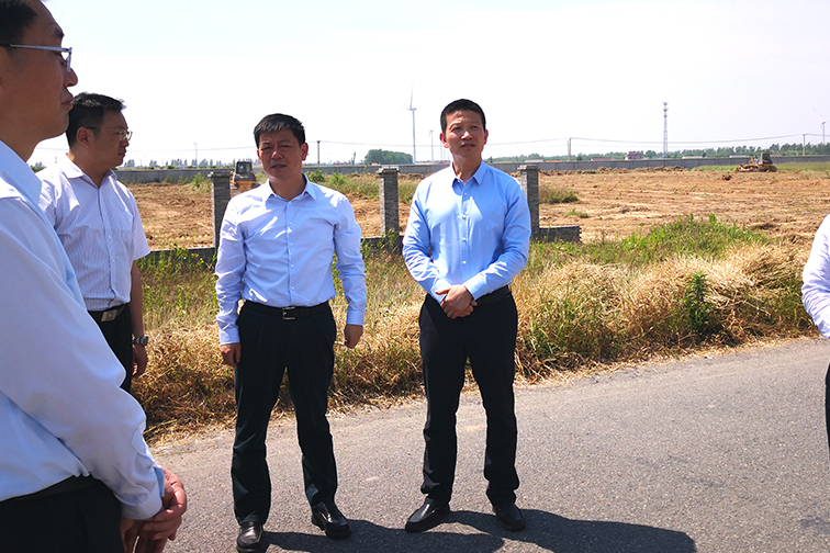5月28日,大豐區委書記薛盛堂一行調研江蘇沿海現代農業產業園項目。集團公司總經理周金陽熱情歡迎薛盛堂書記一行。