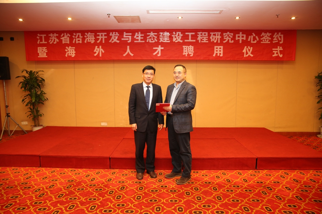 12月17日上午,集團(tuán)公司與河海大學(xué)聯(lián)合舉行了江蘇省沿海開(kāi)發(fā)與生態(tài)建設(shè)工程研究中心簽約暨海外人才聘用儀式。省委組織部干部四處處長(zhǎng)董德,河海大學(xué)校長(zhǎng)徐輝、副校長(zhǎng)唐洪武、海外專家代表李凌,集團(tuán)董事長(zhǎng)鄧東升、總經(jīng)理丁建奇、副總經(jīng)理唐正東,黨委委員、東臺(tái)公司總經(jīng)理周金陽(yáng)以及省國(guó)資委監(jiān)事席寧等出席儀式。儀式由丁建奇總經(jīng)理主持。