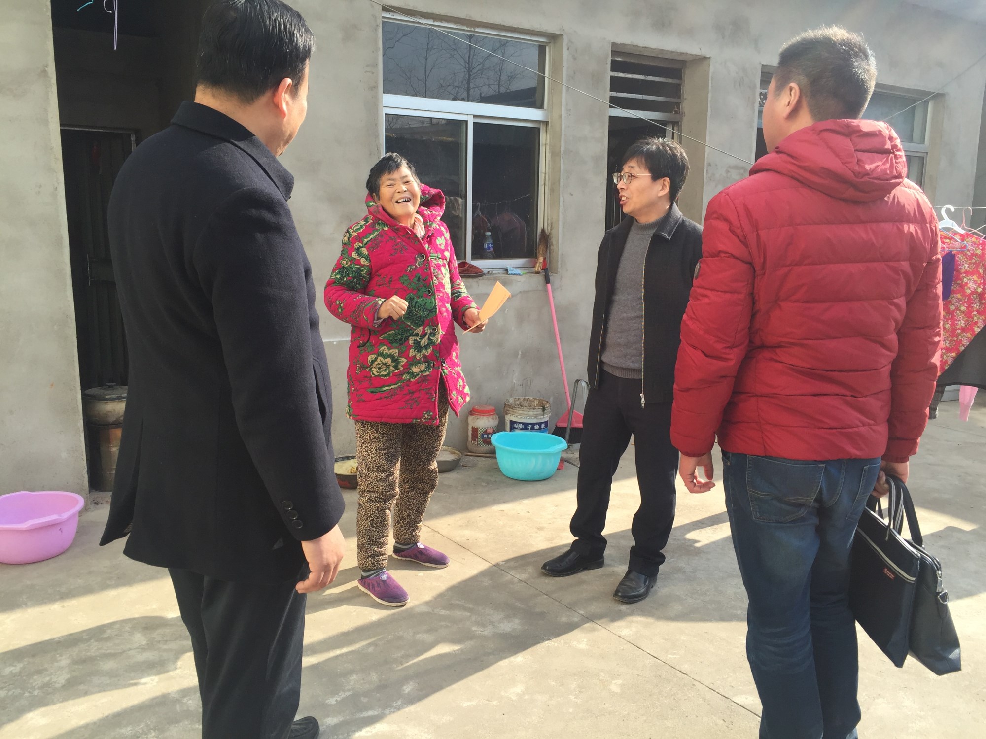 第三支部委托駐村第一書記張勇對(duì)新民村困難群眾進(jìn)行了摸排,共篩選出4戶因病致貧的特殊困難戶。近期,第三支部書記胡國(guó)平同志等3人在駐村干部張勇和新民村村委主任苗玉軍陪同下,為這4戶困難戶送去了慰問金和誠(chéng)摯的問候。走訪慰問中,鄉(xiāng)、村兩級(jí)干部表示,在集團(tuán)的扶貧支持下,駐村第一書記帶領(lǐng)村民建廠房、擴(kuò)道路、興產(chǎn)業(yè),村民收入不斷提高,兩年來村容村貌發(fā)生了翻天覆地的變化,取得了令人振奮的成績(jī)。這次又送來了慰問金,這份情義讓他們深受感動(dòng),集團(tuán)的扶貧支持和對(duì)困難群眾的關(guān)心關(guān)愛,更堅(jiān)定了他們帶領(lǐng)村民脫貧致富的信心。慰問同志鼓勵(lì)困難群眾保持樂觀心態(tài),堅(jiān)定信心,通過社會(huì)各界的幫扶和自身努力克服眼前的困難,并建議新民村利用村集體收入建立大病醫(yī)療補(bǔ)充保障機(jī)制,幫助因病致貧村民有效解決實(shí)際困難,助他們?cè)缛斩蛇^難關(guān)。