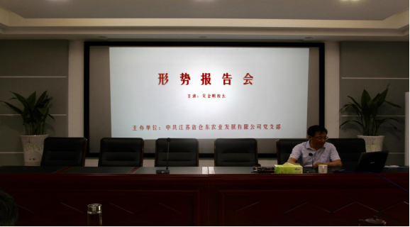 6月14日,倉東公司黨支部邀請如東縣委黨校常務副校長吳金明作《學習六中全會精神,迎接十九大的召開》專題黨課,公司全體黨員職工、轄區6名黨員養殖戶參加學習。