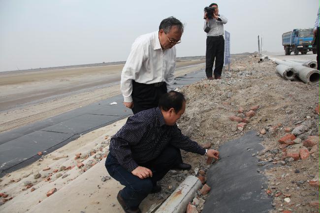 鄭新立說,灘涂圍墾,是國家確定的江蘇沿海開發重大工程之一,條子泥,是一塊寶地、福地,條子泥匡圍項目的建成,對當地乃至江蘇、全國都會起到重大影響。鄭新立還饒有興趣的察看了吹填砂施工現場,詢問了圍墾及防護工程施工工藝,表示這將對淮河治理也有很好的借鑒指導作用。